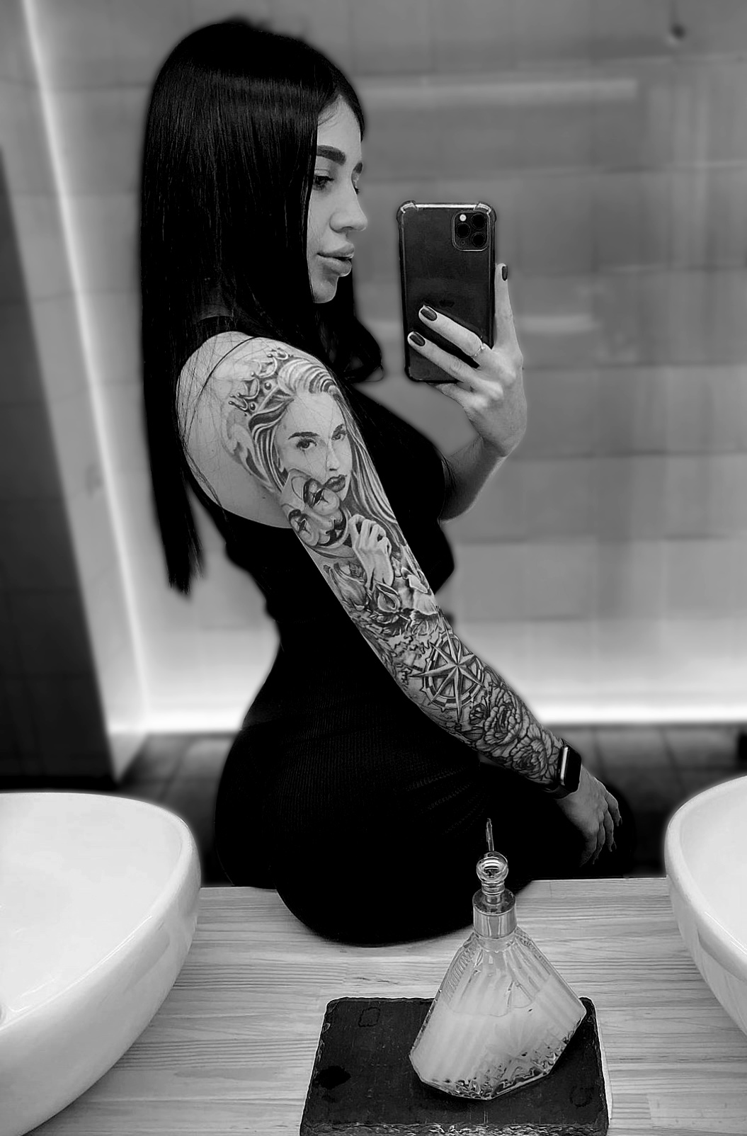 Хотіла тату, яке буде виглядати актуально через 10, 20 років. Звернулася до Дмитра, бо довіряю лише профі. Він показав мені портфоліо з роботами різної давності, і я була в захваті — всі виглядають чудово! Це і є показник справжньої майстерності та досвіду. Дякую за вашу роботу!